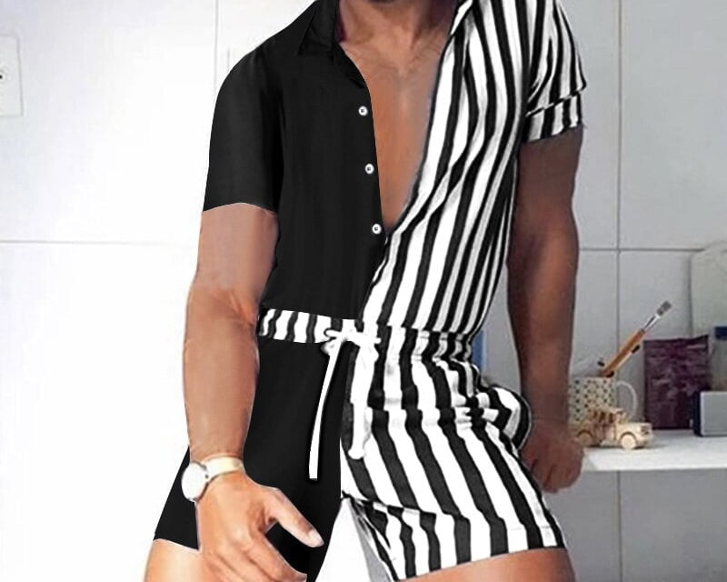 Cette tenue est un must-have pour toute garde-robe ! Avec son motif rayé, ce short à manches courtes vous permettra de vous détendre tout en restant confortable et décontracté. La coupe ajustée et les boutons ajoutent une touche de sex-appeal à votre look.
